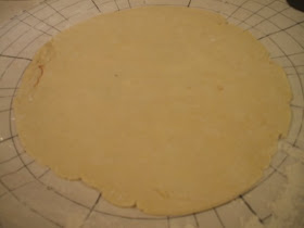 OK, first we make our dough, split it in two, and refrigerate. Once chilled, roll each half into a circle.